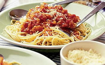 Lower the spaghetti into the boiling water, stirring occasionally until cooked, about 15 minutes. Drain the water and re-fill with fresh boiling water from a kettle to rinse. Drain again and serve. |